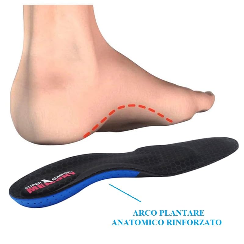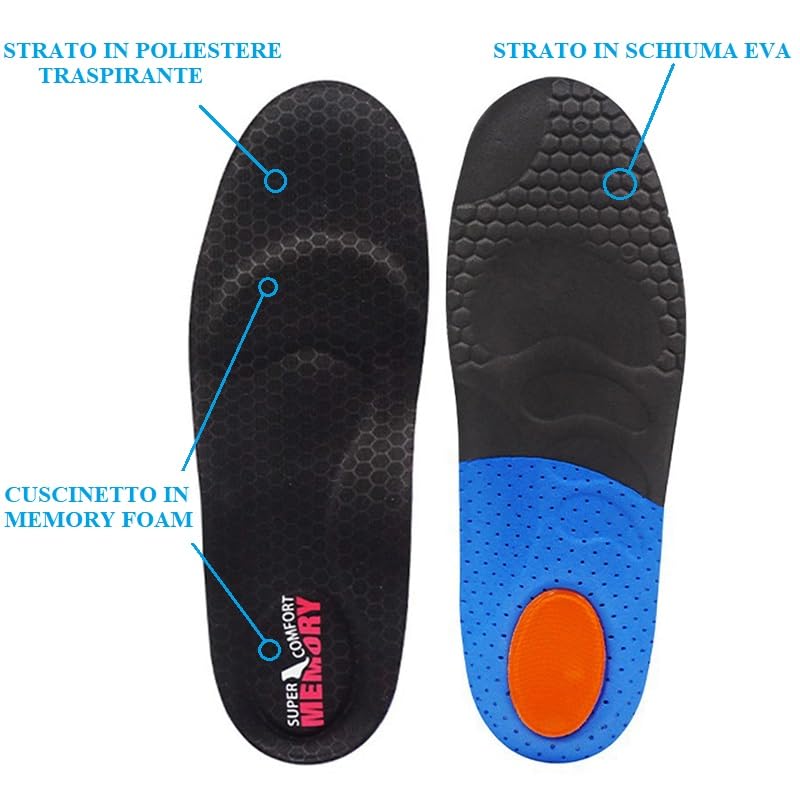 Un paio di solette anatomiche in memory foam disponibili in diverse misure ideali per
