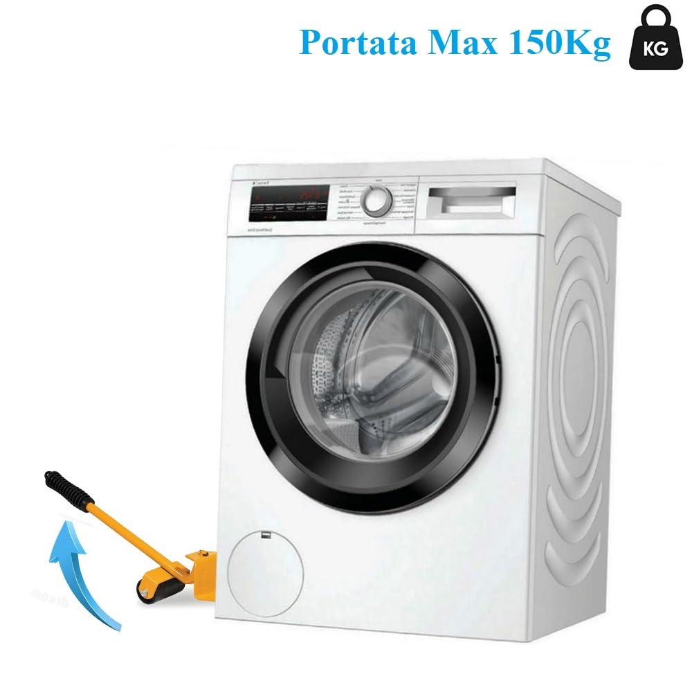 Sollevatore manuale per mobili in Acciaio - Misura 35x8,5cm e portata massima 150 kg - Manopola con presa Ergonomica e 4 Ruote in PP, sistema di sollevamento per traslochi