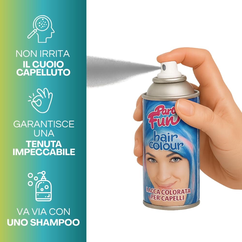 La bomboletta a spray ha una capacità di 100 ml, prodotta in Europa garantisce la massima sicurezza, qualità e affidabilità del prodotto. Il prodotto non emette odori sgradevoli ed è facile da rimuovere, basta uno shampoo per ripulire i capelli senza rovinarli.