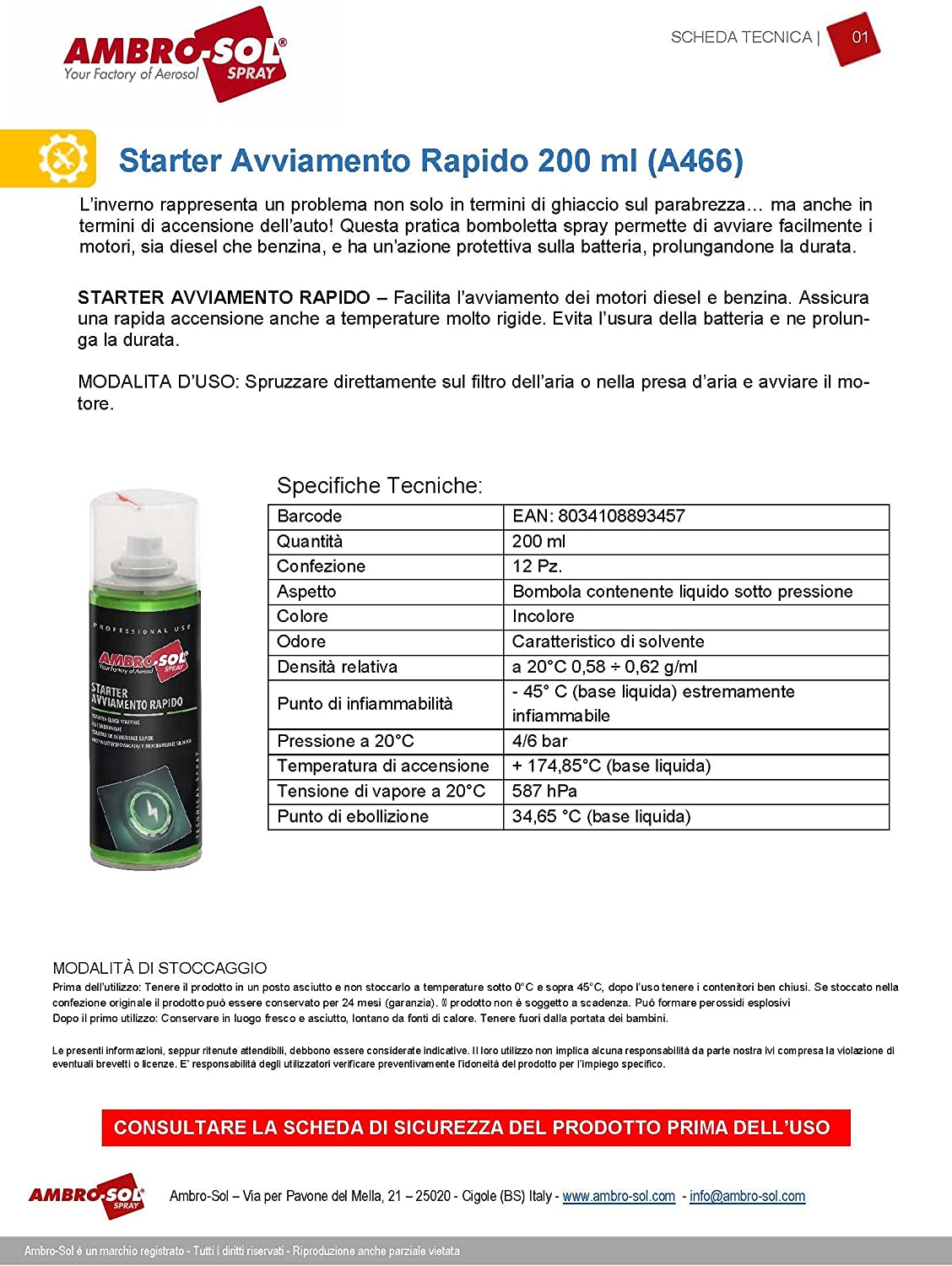 Starter Spray Avviamento rapido motori diesel e benzina Bomboletta 200 ml con cannuccia