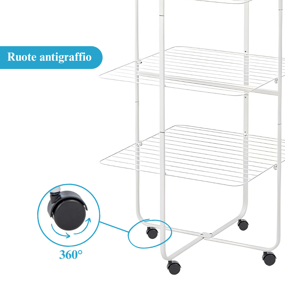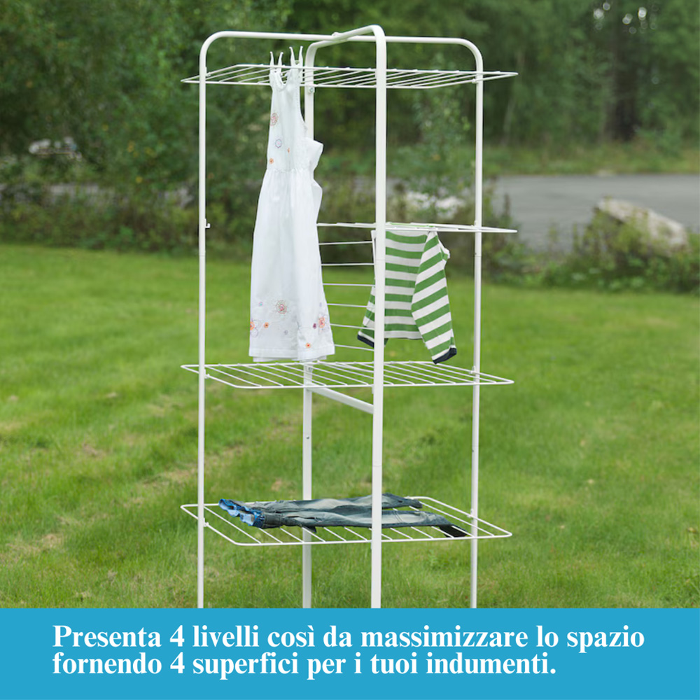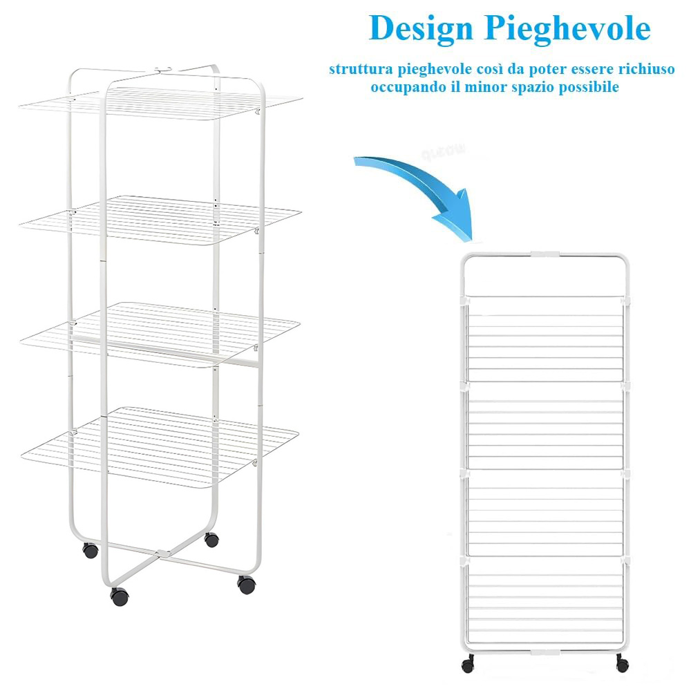 Stendibiancheria a colonna con 4 livelli e struttura pieghevole in acciaio con spazio di stenditura pari a 40 Metri - Dimensioni 70x70x170 cm