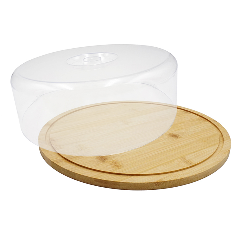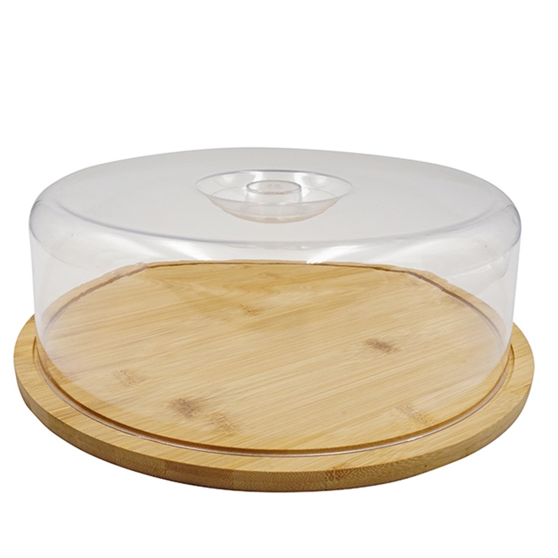 Tagliere in legno di bambù Rotondo con COPERCHIO Trasparente - Diametro 28 cm