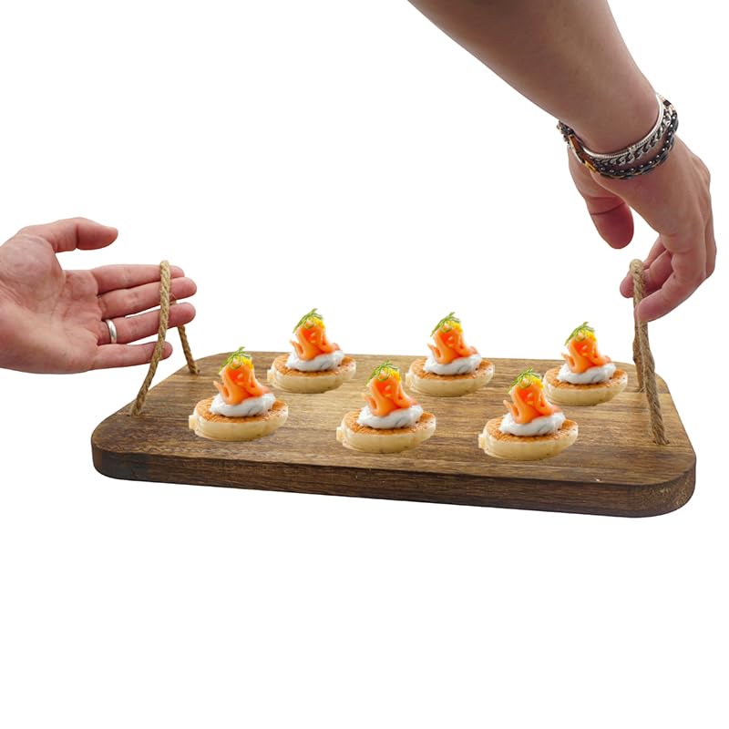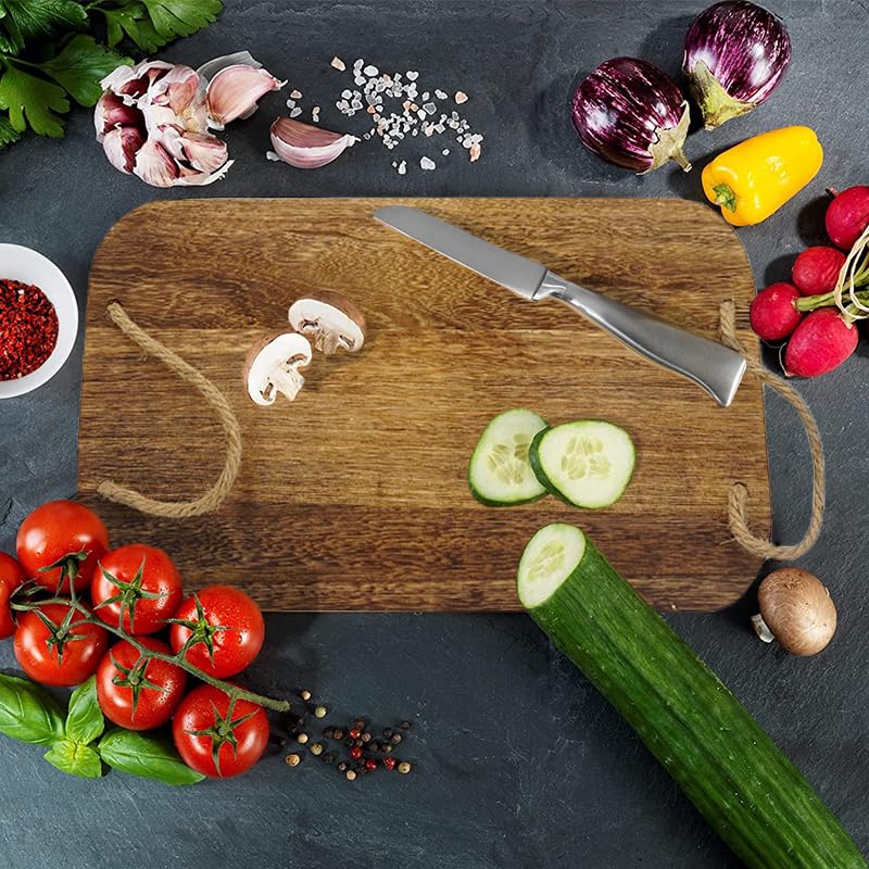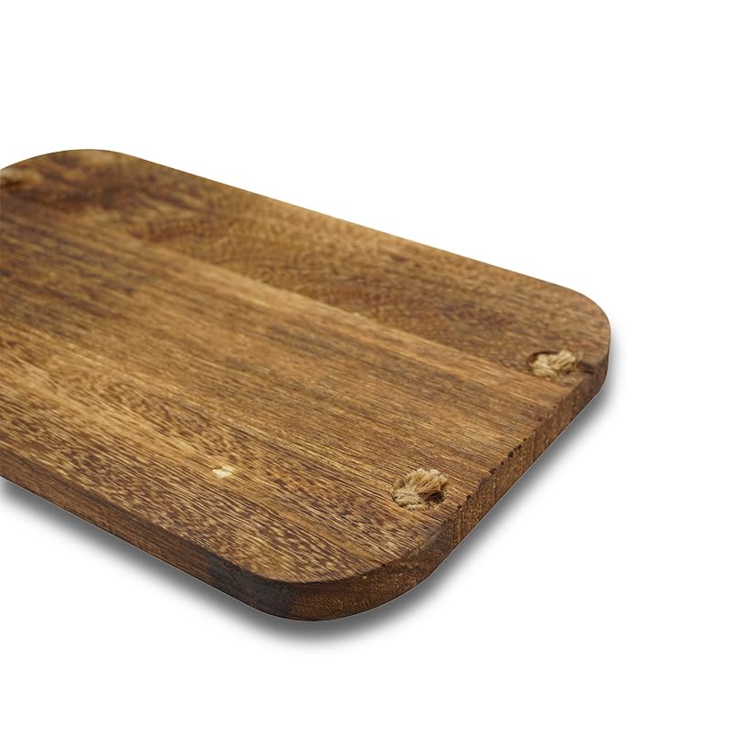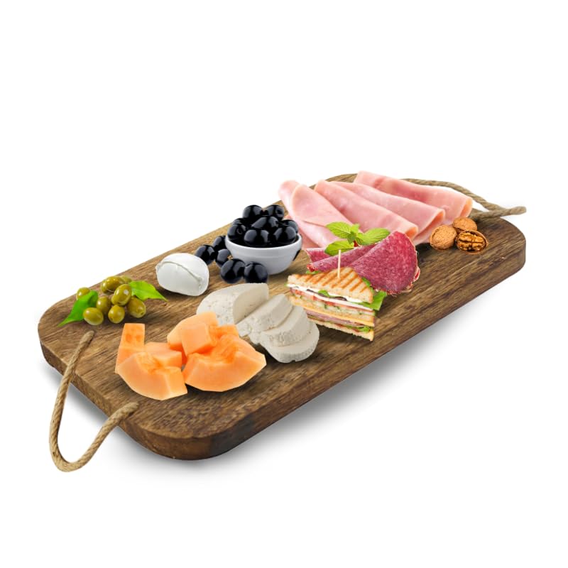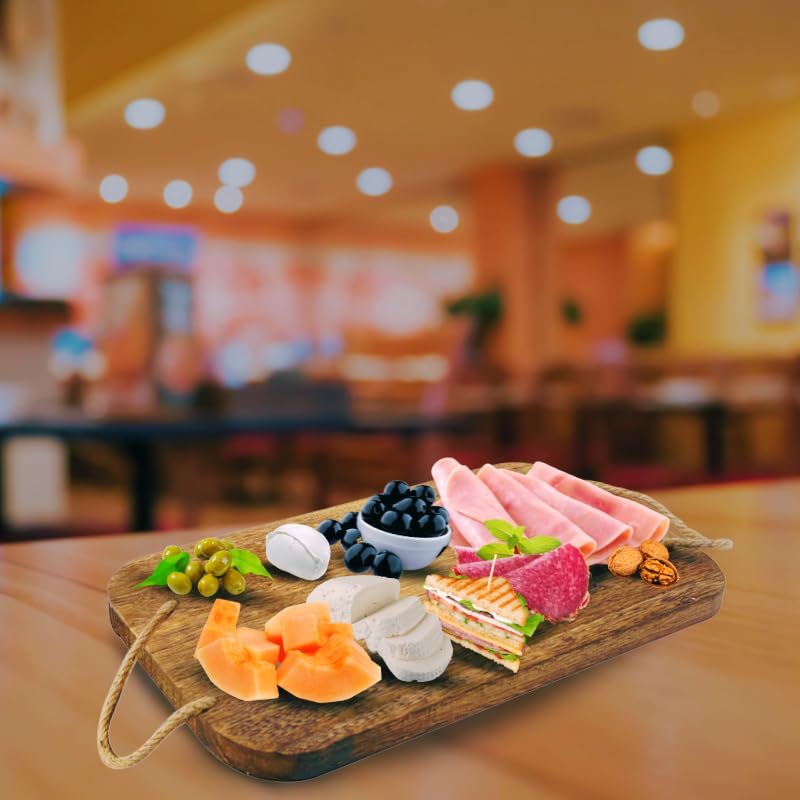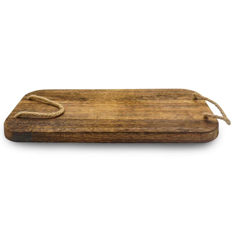 Tagliere Rettangolare in Legno Naturale con 2 Manici in Corda - Misura 40x24 cm e Spessore di 2 cm - Tagliere Salumi per servire Aperitivo, Finger Food, Antipasti