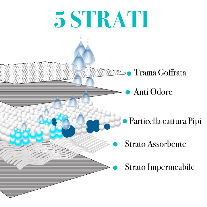costituito da 5 strati rendendo il prodotto estremamente assorbente ed efficace:
