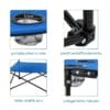 Tavolo rotondo in tessuto oxford 600D di alta qualità con misura aperto pari a 72x72x60 cm. Progettato per offrire un'area pratica e funzionale per i tuoi momenti all'aria aperta.