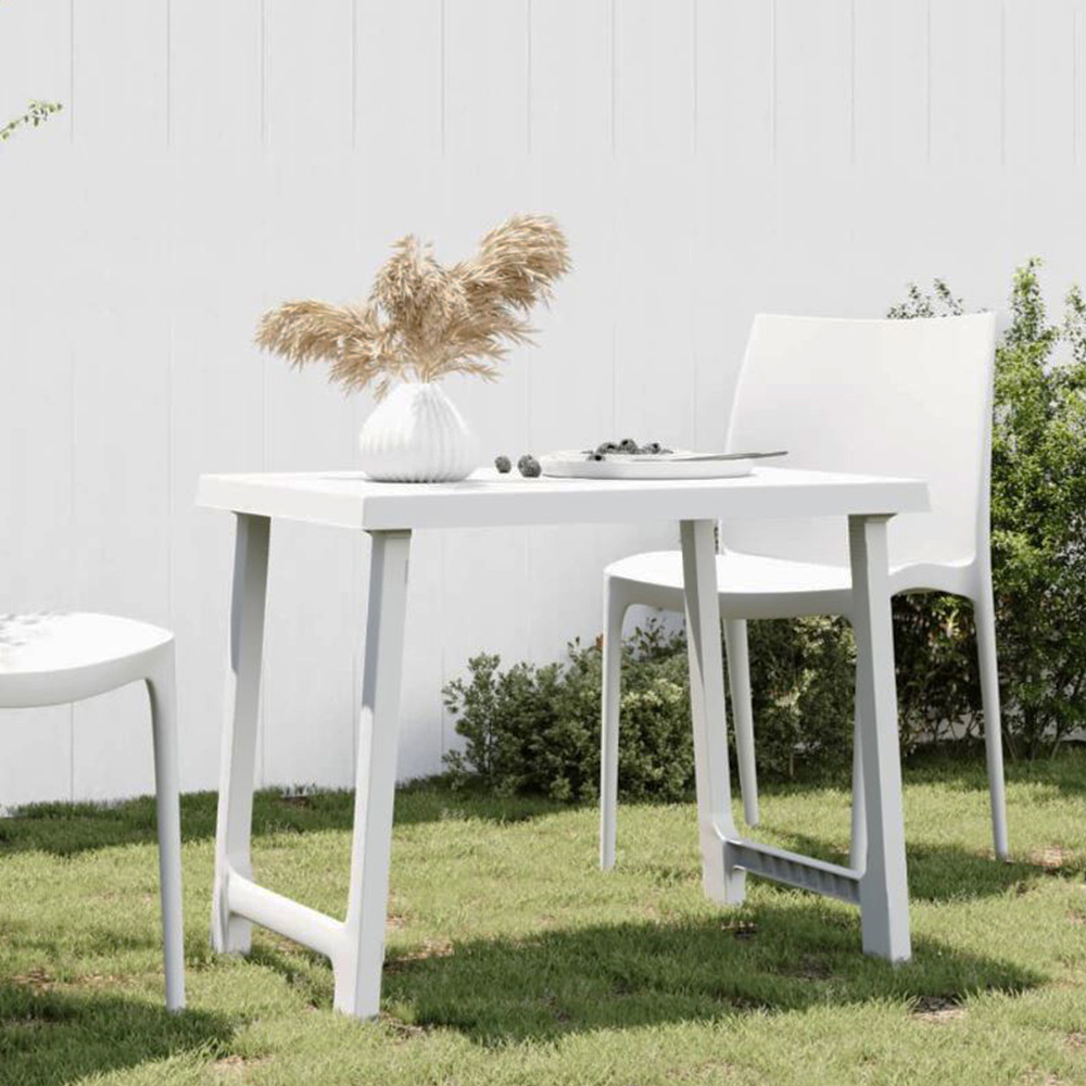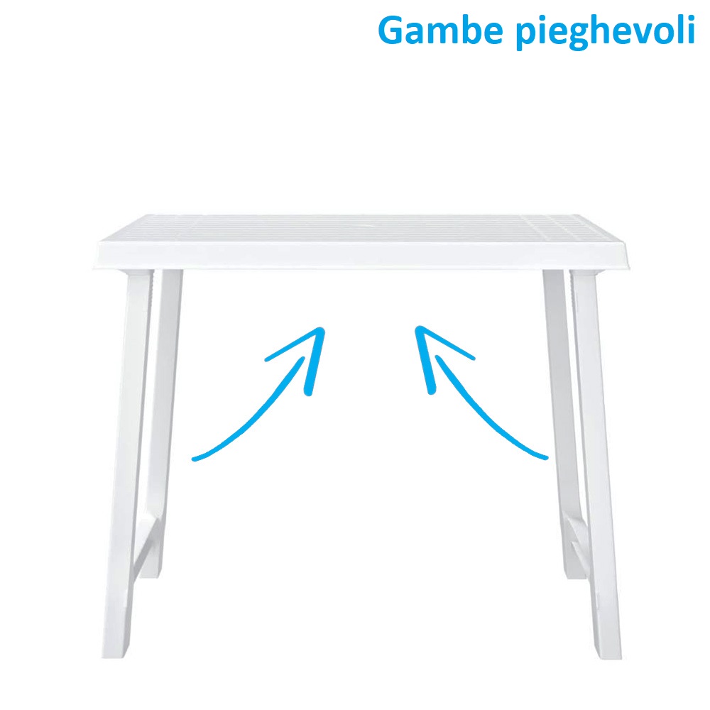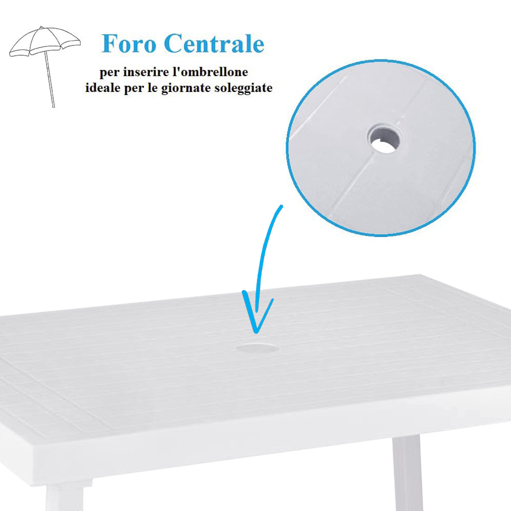 Tavolo rettangolare da giardino in plastica con foro per ombrellone - Misura 81x56x63 cm - Tavolino per esterno con gambe pieghevoli - Bianco