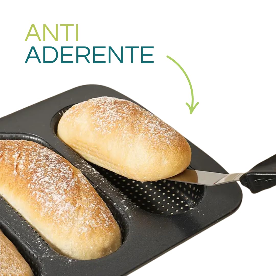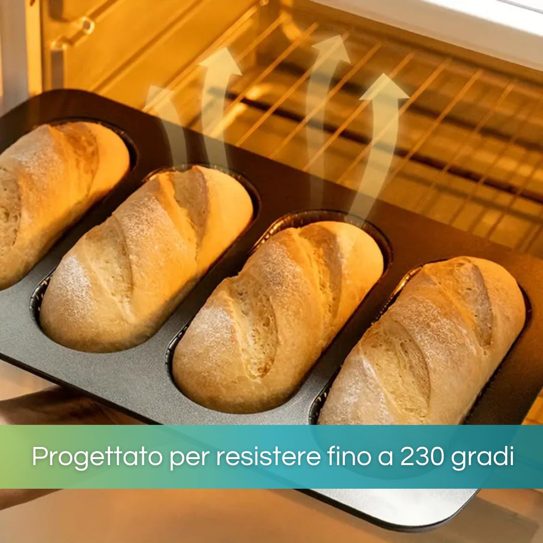 Teglia forata per panini e baguette 4 Stampi da 7×17 cm