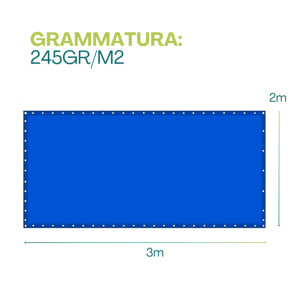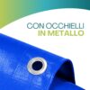 - OCCHIELLI - composto da occhielli rinforzati per appendere o fissare il telo protettivo in modo comodo e sicuro ovunque lo desideri. Disposti lungo i lati, realizzati in metallo, sono estremamente resistenti e affidabili così da evitare che il telone possa rompersi durante l'utilizzo.