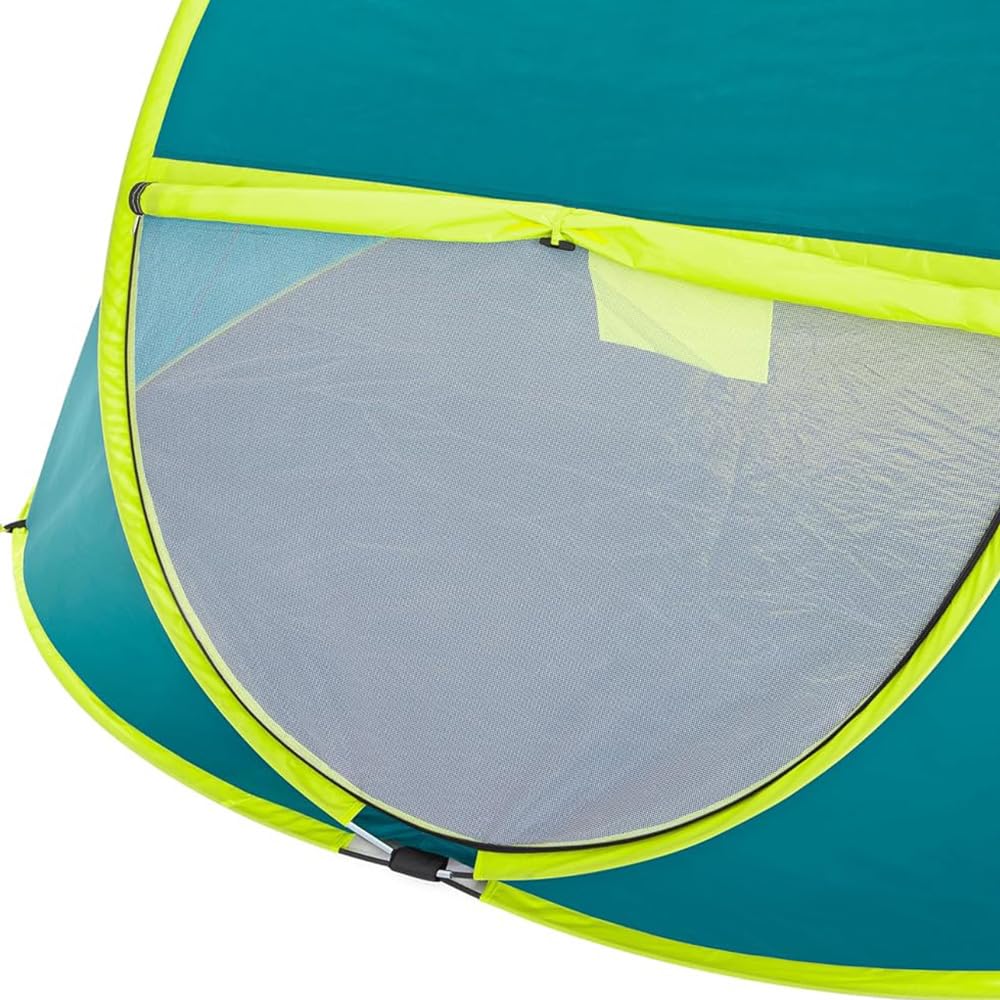 Tenda da campeggio pop up Verde con dettagli Gialli Fluo, formata da un monostrato poliestere resistente all’acqua. Tempo di montaggio: 3 minuti. La tenda è fornita completa di picchetti, corde di ancoraggio e un pratico sacco per il trasporto. Le nostre tende da campeggio sono disponibili in diverse misure:- 235x145x100 cm (per 2 persone);