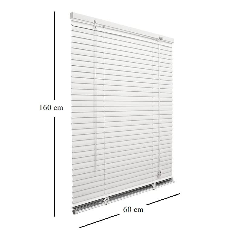 Tenda Veneziana (60x160cm) in PVC bianca per finestra con lamelle inclinabili - Tenda parasole con fissaggio a muro