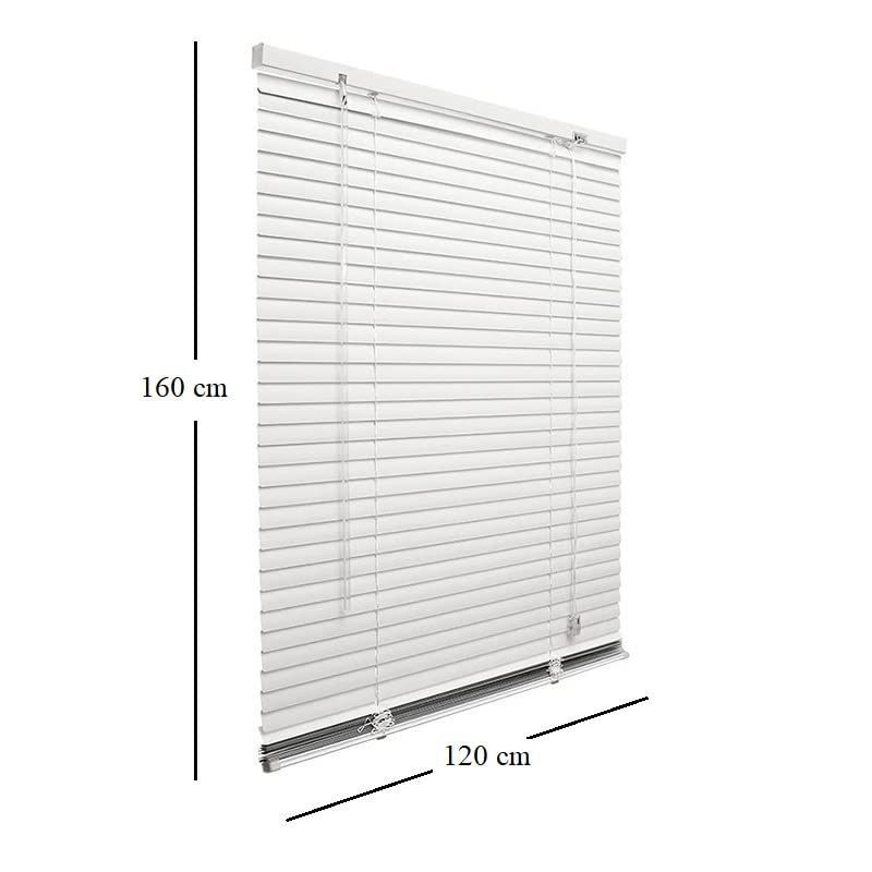 Tenda Veneziana (120x160 cm) in PVC bianca per finestra con lamelle inclinabili - Tenda parasole con fissaggio a muro