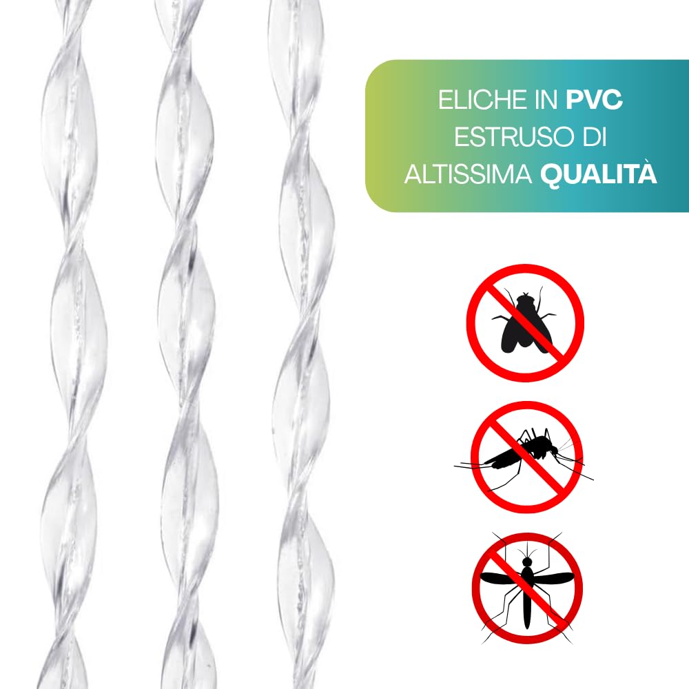 Tenda con eliche in Pvc Estruso con misura pari a 120x230 cm, ideale per decorare la tua finestra o porta proteggendo la tua abitazione da mosche, zanzare ed insetti. Utilizza la nostra tenda nei mesi più caldi così da poter lasciar passare l'aria proteggendo allo stesso tempo la tua privacy.