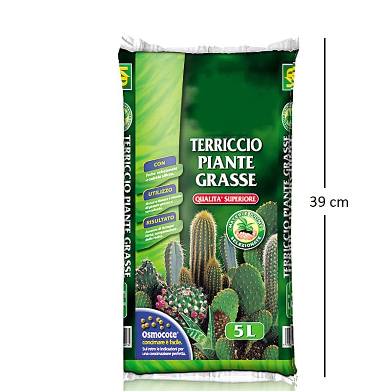 Sacca da 5 Litri di Terra per piante grasse - Ad alta capacità drenante - Per messa a dimora in piena terra o vasi