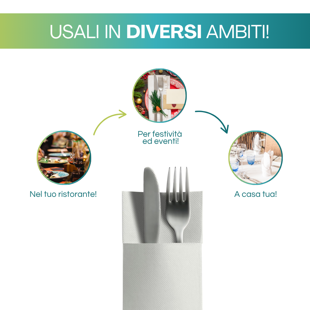 - 24 confezioni da 50 pezzi (1200 tovaglioli portaposate).
