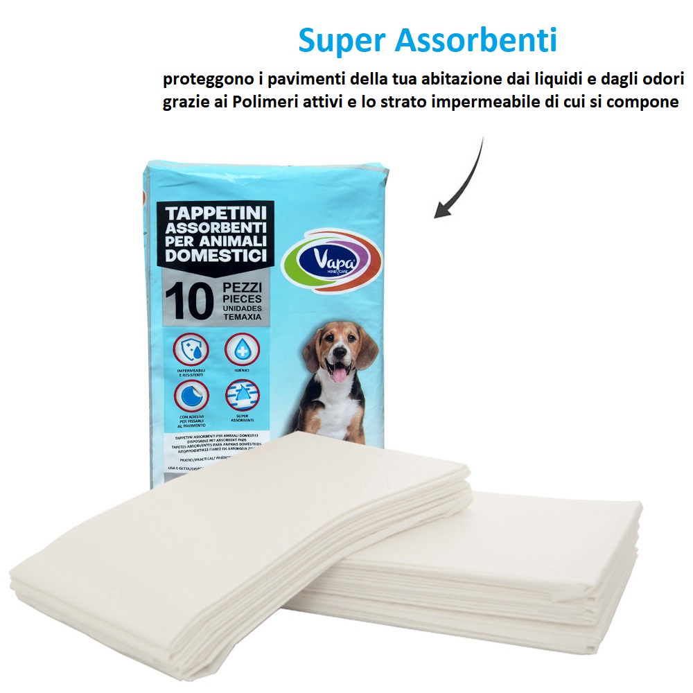 I tappetini per Cani 60x90 usa e getta sono la soluzione ideale per mantenere pulite le superfici della tua casa. Grazie alla loro tecnologia avanzata, questi tappetini igienici sono dotati di polimeri super assorbenti che trattengono i liquidi, evitando fuoriuscite indesiderate anche dopo l'uso mantengono lo strato esterno asciutto e privo d'odori.