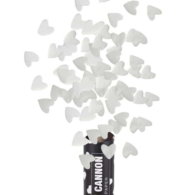 Spara coriandoli da 30 cm con coriandoli a forma di Cuore di colore bianco indispensabili per creare un bellissimo effetto scenografico durante le tue feste: matrimonio, battesimo, cresima, comunione, ecc...Gli sparacoriandoli con cuori bianchi sono disponibili nelle seguenti quantità: