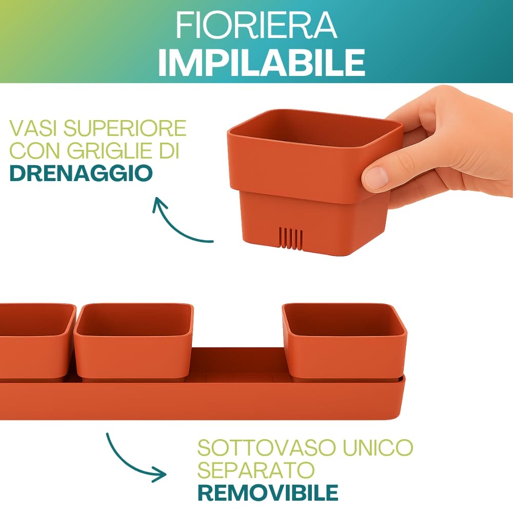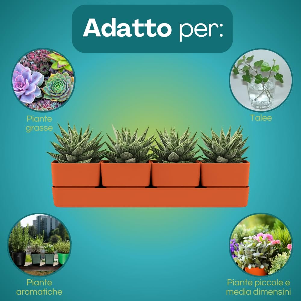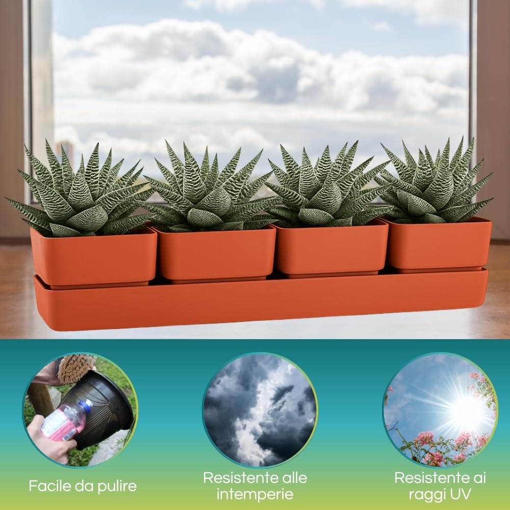 Vasi per fiori rettangolari 48x12x11 cm con sottovaso