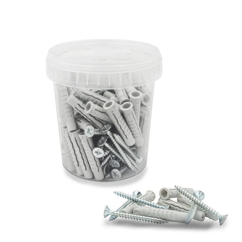 Viti e tasselli per muro Secchiello con 50 Tasselli a muro in Nylon e 50 viti in acciaio, mis. 10x50 mm - Tasselli universali ad espansione per fissaggio su muratura e cemento