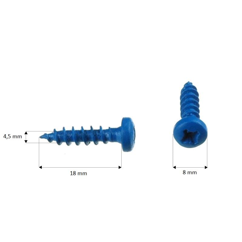 Viti in Acciaio Zincato per Targa Europea, misura 4,5x18 mm - Viti Autofilettanti con impronta a croce per auto e moto - 100 Viti Blu