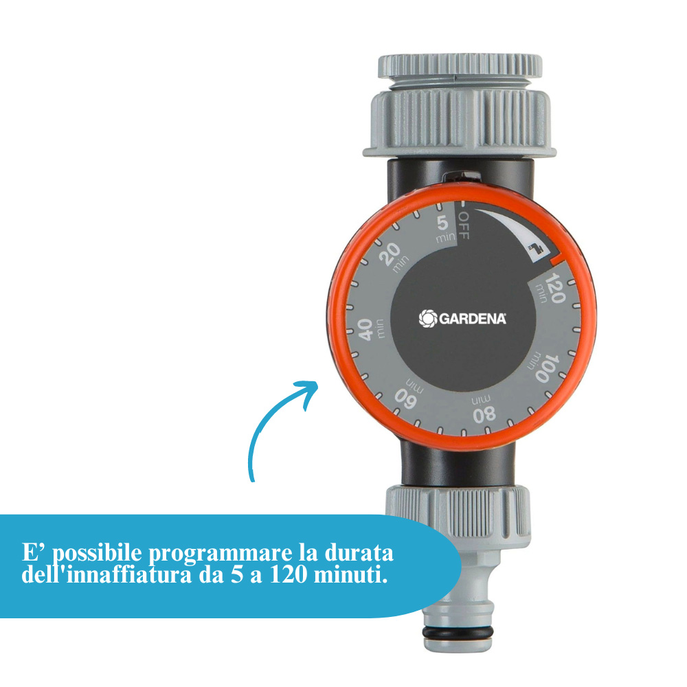 Timer irrigazione meccanico con spegnimento automatico - Permette di programmare da 5 a 120 minuti la durata dell'innaffiatura